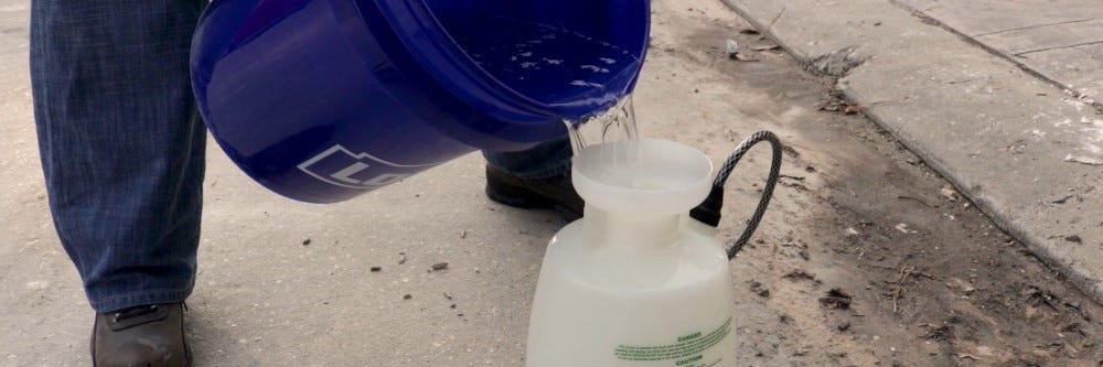 Once it is well-mixed, transfer the solution to a poly sprayer.